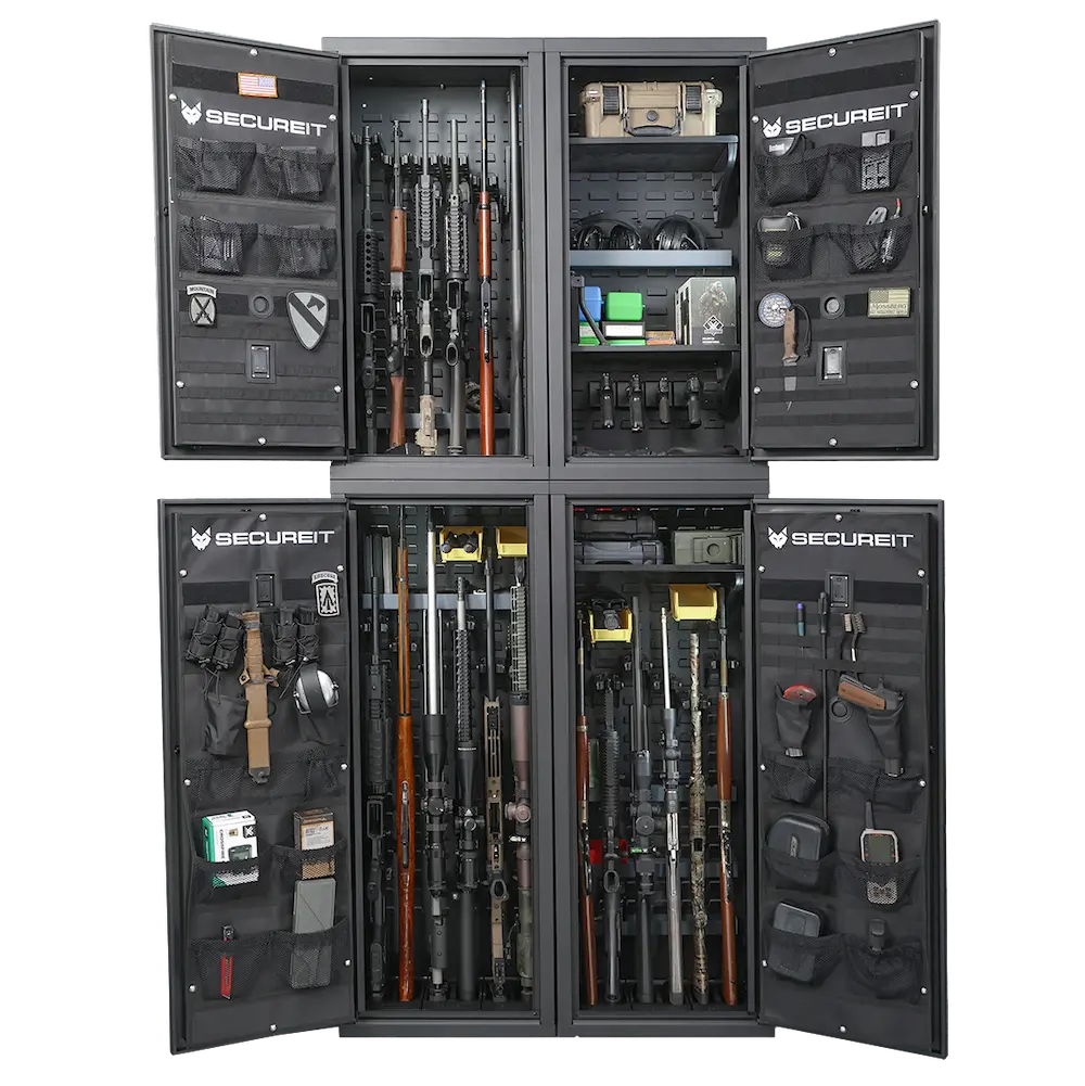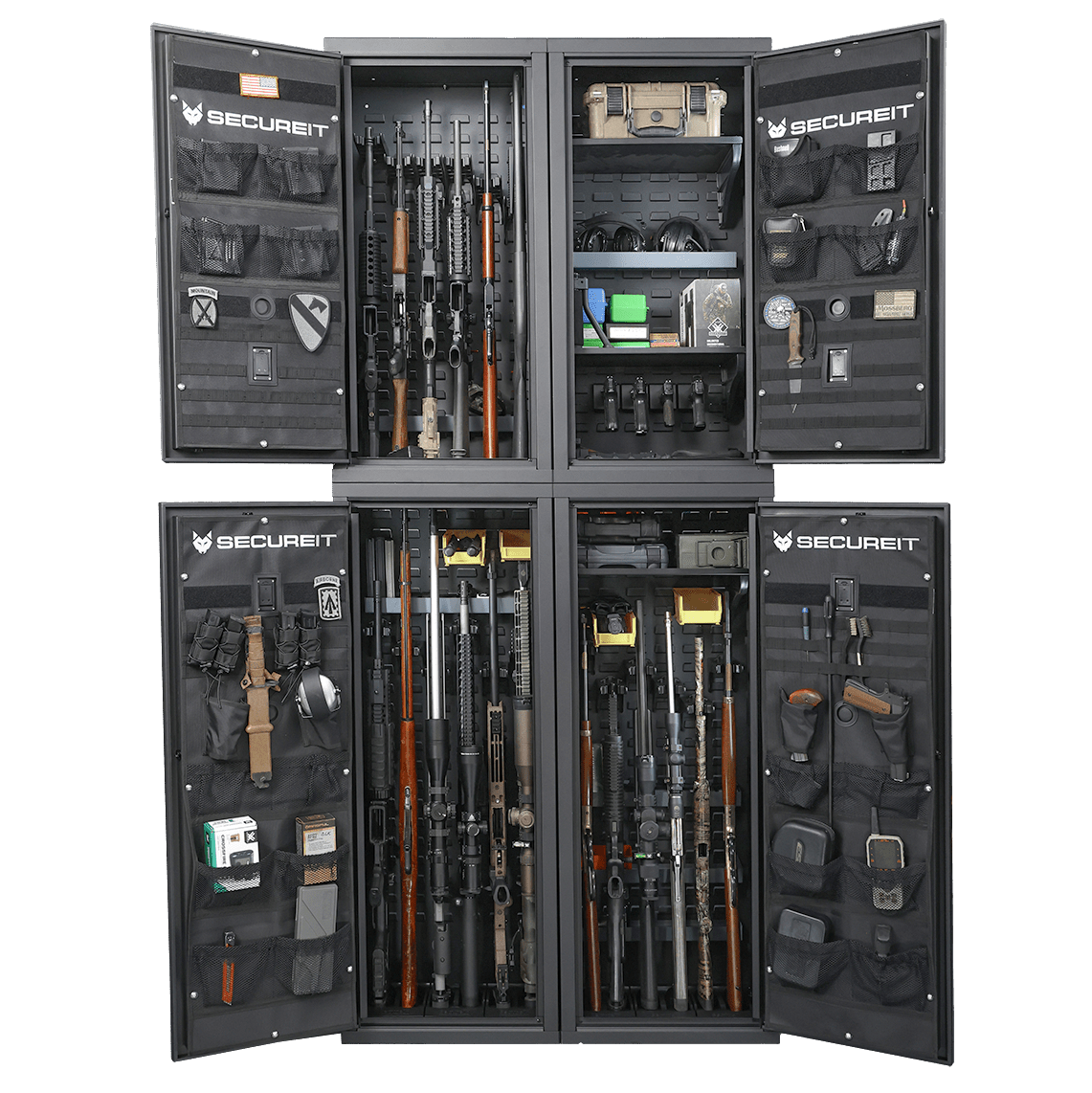 Combining two Agile Model 52s and two Agile Model 40s, the Quad Command Kit Pro delivers the scale and capability of a large safe while maintaining the adaptability and efficiency of SecureIt’s lightweight, modular design. Stack and bolt the units together for a massive 24-rifle configuration, or separate them throughout your home for decentralized security.