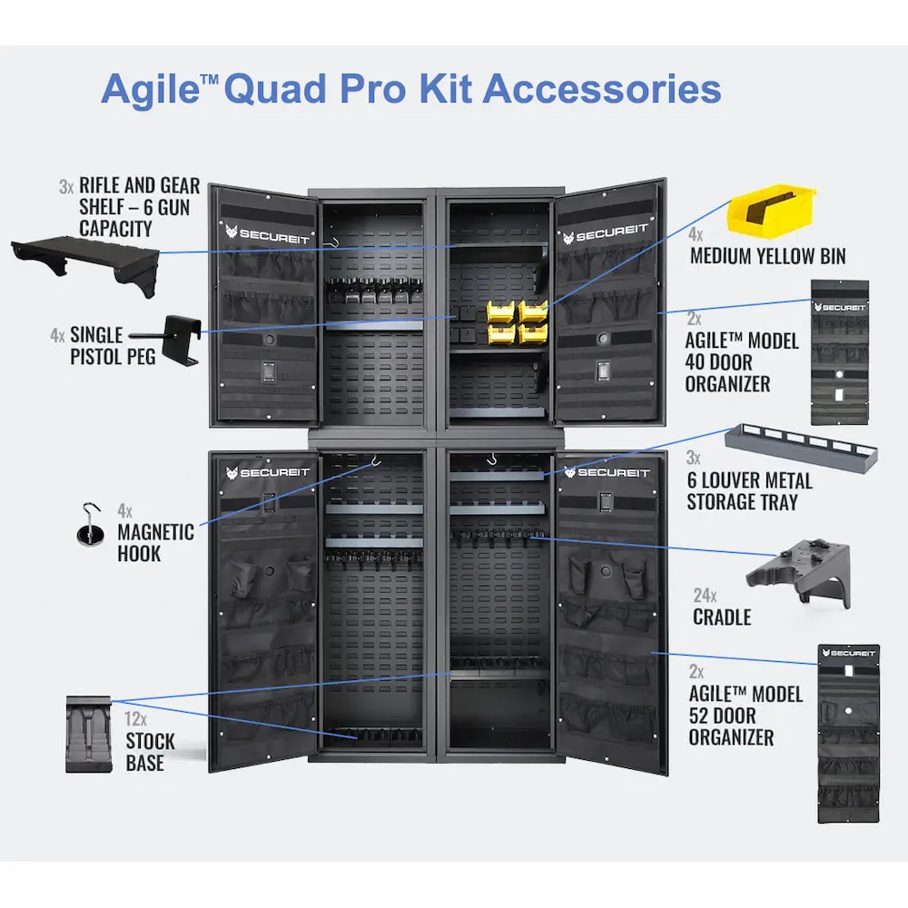 The Agile™ Quad Kit Pro Gun Safe System is designed to deliver fast access to your firearms when you need them, expanded storage capacity and offers over 60 accessories not included with our base Agile™ Quad kit.