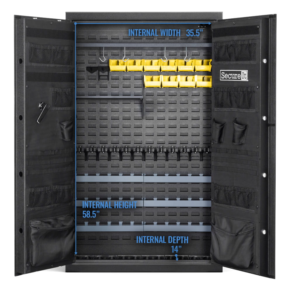 The Answer Model 12 Pro comes loaded with a handpicked accessory package—storage bins, pistol pegs, hooks, and more—giving you endless configuration options at a fraction of the cost of buying separately. Perfect for serious gun owners, it blends the sturdy feel of a traditional safe with lightweight portability and smart organization, making it the ultimate choice for secure, accessible storage.