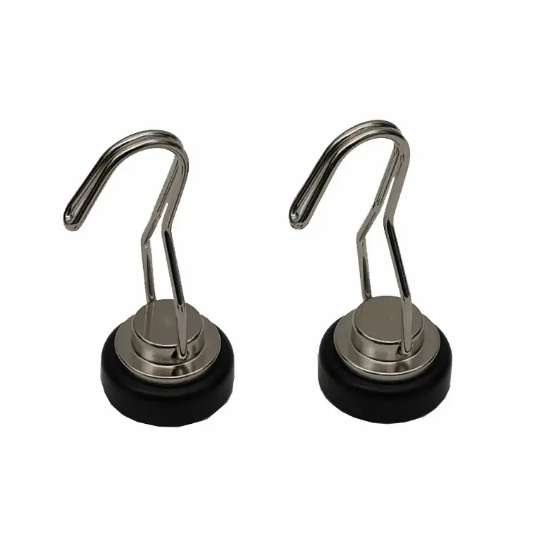 Good strong hooks. Magnet very strong. 20 lb rating is with load hanging perpendicular with face or plane of magnet. If load is parallel with plane of magnetic I would say load rating cuts in half…strong in either case though.